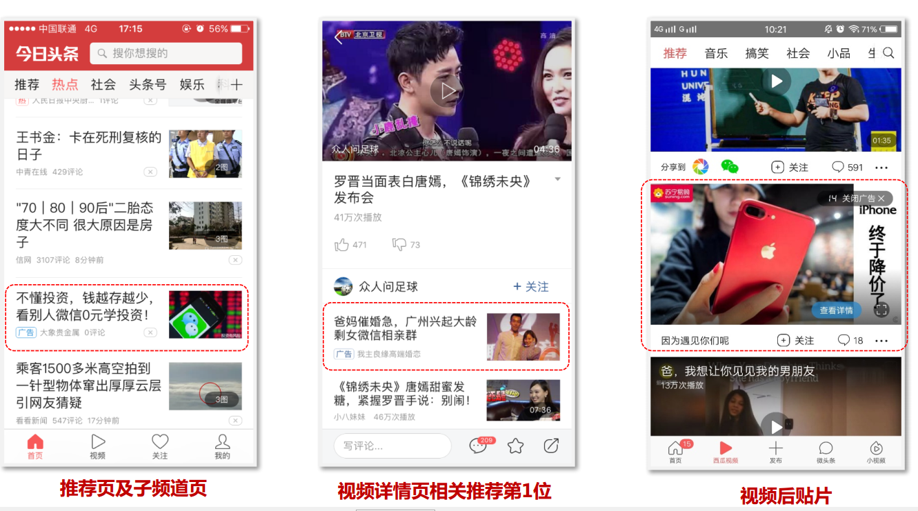 信息流广告:在今日头条的资讯信息流中依托人工智能实现的广告推荐形式。