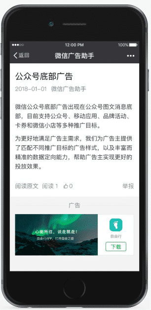 微信公众号底部广告位置:微信公众号底部广告,出现在公众号文章内容区域与评论区域(若有)之间。接下来告诉您微信公众号底部广告的类目推广能力。