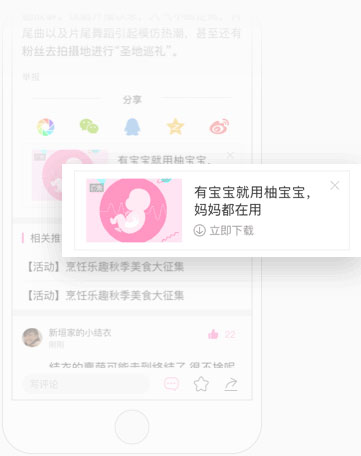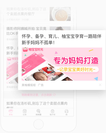 第一时间在美柚家族APP醒目展示,支持静态、动态多种展示效果。