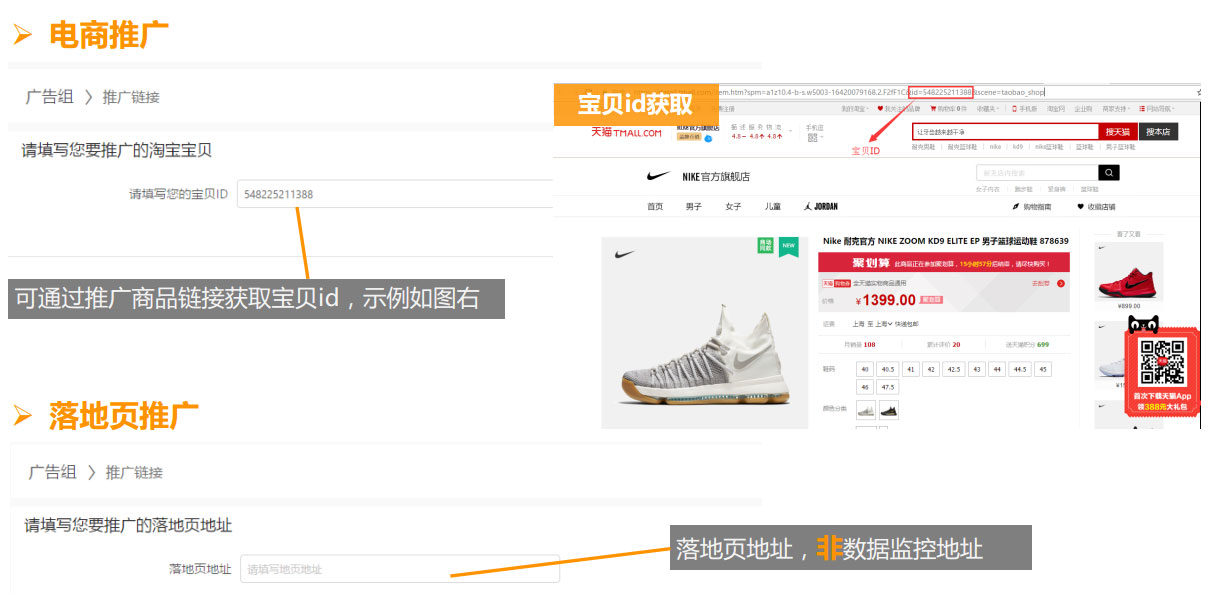 推广产品信息设置,包括三类:应用推广、电商推广、落地页推广