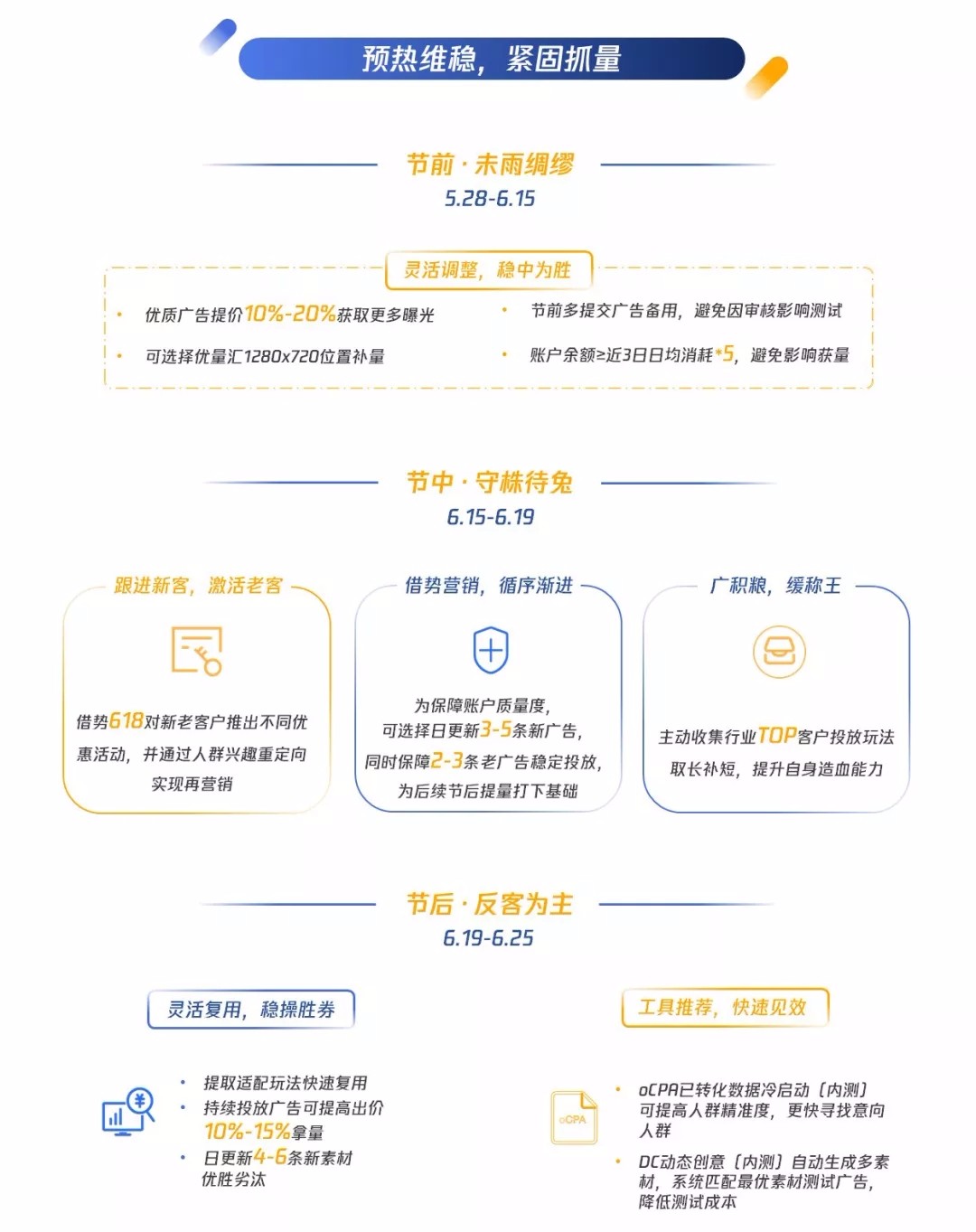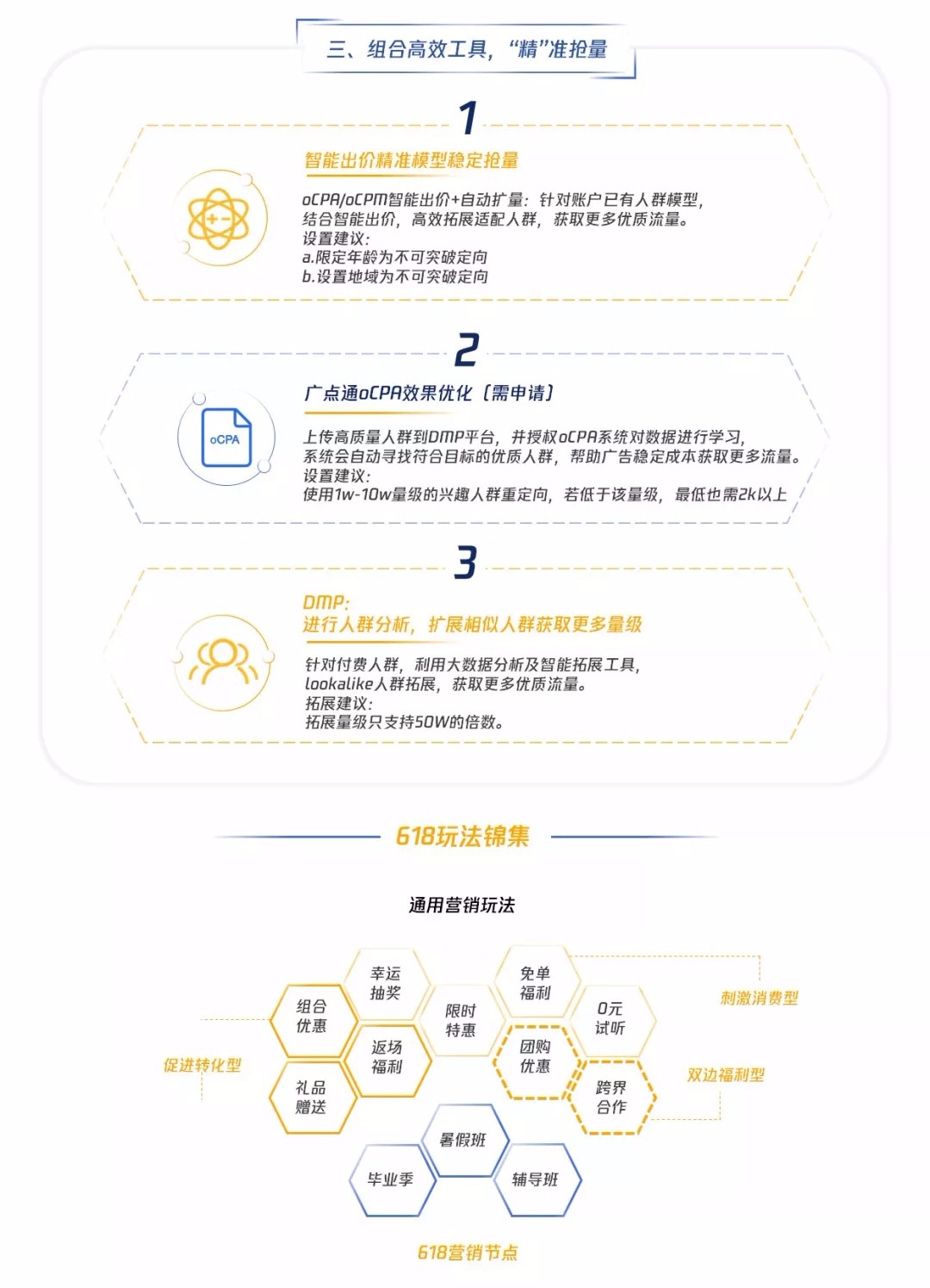教育行业如何突围,打造6月营销的高光时刻!接下来,一图带你解锁618教育行业获量全攻略,重点围绕“避峰抢量”、“节中维稳”、“创意指引”三大模块,逐一破解流量难题,助力教育行业广告主在618期间抢占流量先机,高效获量。