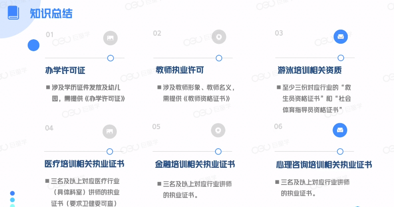 以上就是我们刚刚说到的教育类5种资质类授权的要求都总结在此,大家可以简单浏览,再次回忆。