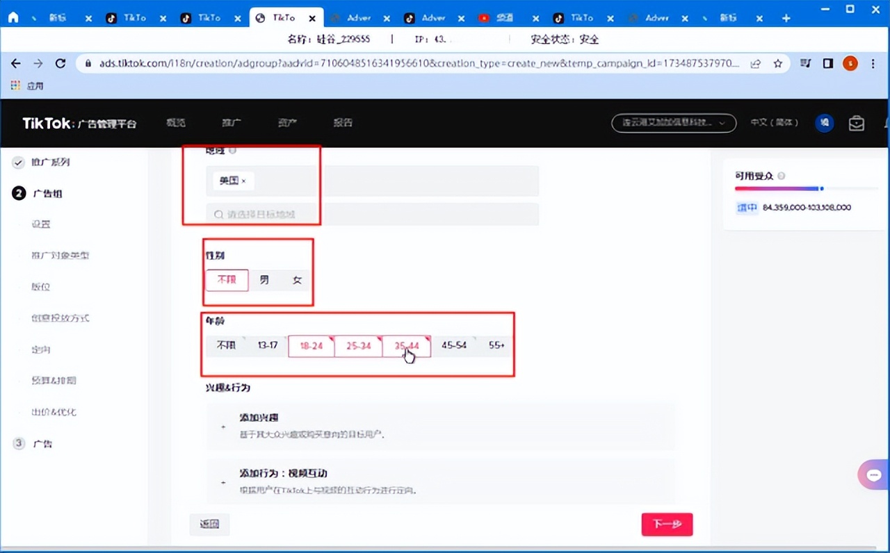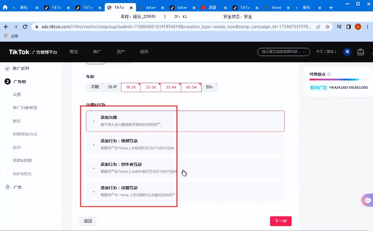 其次可以通过兴趣、行为进行定向: