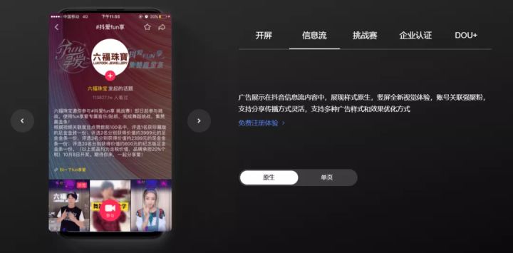 信息流广告是在 App 内「推荐」页面内出现的广告,即用户日常「刷」的多的页面。