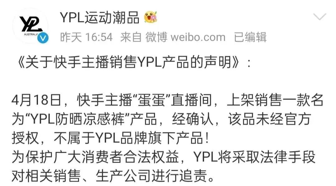 随后,这款“YPL防晒凉感裤”被消费者指出是假货,称在YPL品牌官方店并未找到这一款产品。