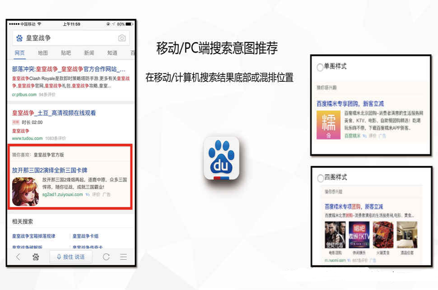通过百度的大数据分析以及用户浏览行为的关注点进行广告定向投放,广告投放效果真实有效,人群定位精准高效。