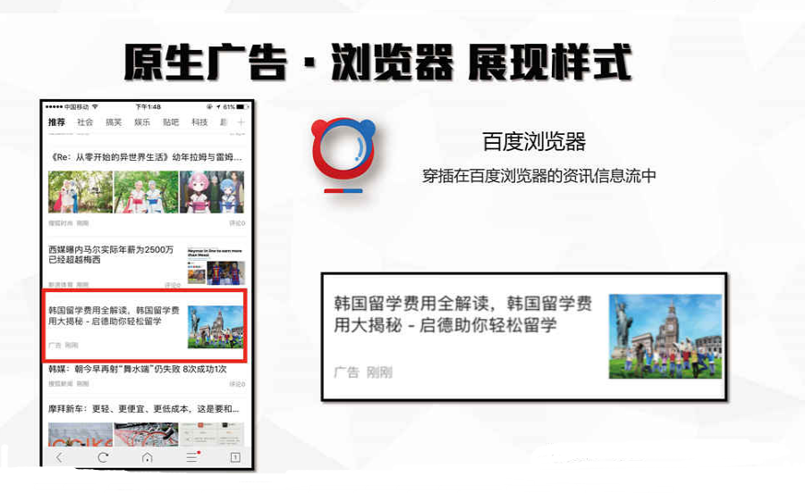 百度手机浏览器信息流推广样式展示