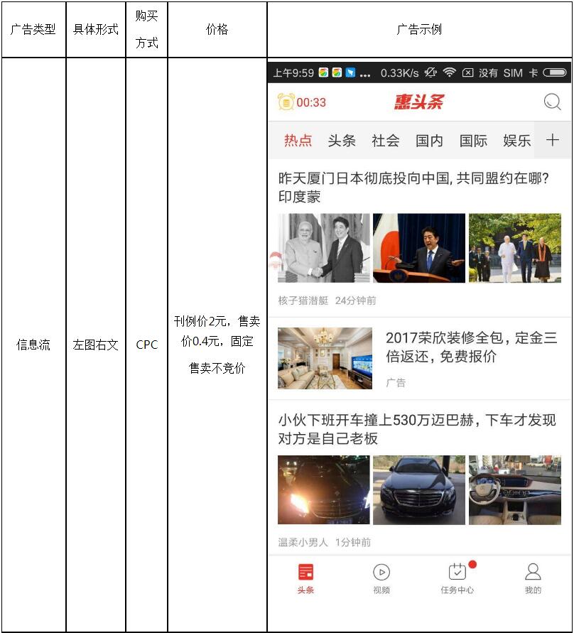 惠头条是一款移动新闻APP,2016年9月正式上线,主打“生活阅读”以新闻资讯为主体内容,通过特色运营手段,培养用户阅读习惯。为用户推荐有价值、个性化的内容资讯。惠头条集有趣、有料、有品内容于一体,深度挖掘数据,每天推荐国内国际资讯、今日头条、娱乐新闻等海量内容和趣味视频。 惠头条APP的用户增长速度惊人,短短10个月的运营时间突破了日均活跃用户100W+,月均活跃用户500W+。在资讯类榜单TOP排名中,日人均打开次数,日均活跃用户,日新增用户均为Top 5%。惠头条用户在三四五线城市占比74.04%,女性用户占比60%,用户登录比例高达92.6%,广泛养成深度使用习惯。截止2017年5月惠头条的用户突破500万。 惠头条推广优势