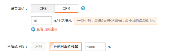 CPM:按照微博在用户信息流中曝光人次进行计费,5元起出价,每次加价0.1元起;