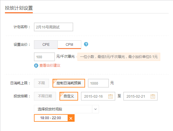 注意:计划上限不得低于出价的10倍;上限调低第二天生效,调高即时生效